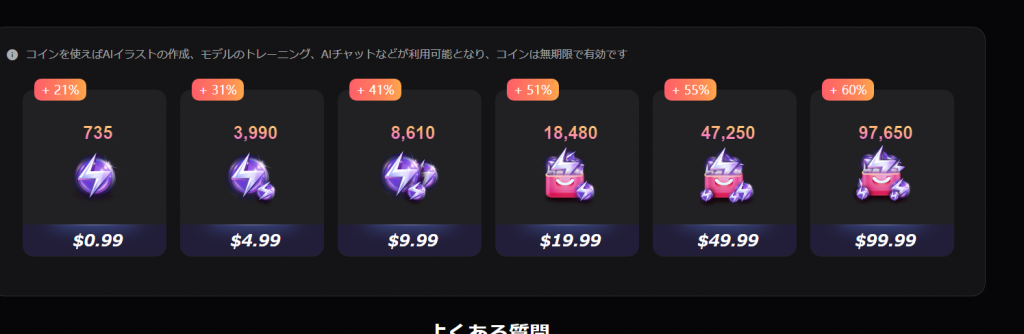 SeaArtのスタミナは毎日付与されるので、残高不足に陥ったとしても時間が経てば回復します。また、今すぐ画像を生成したい場合は、コインを購入するといった対処法もあります。