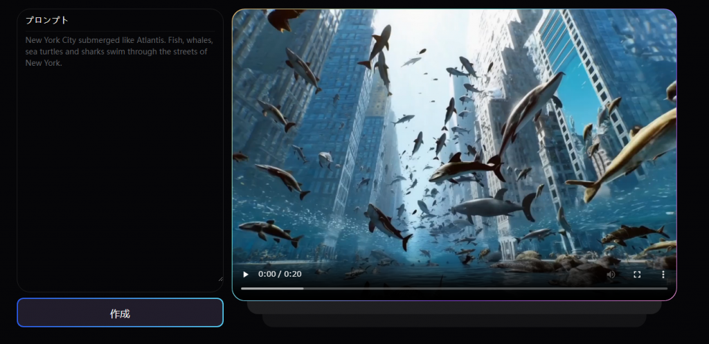 「Sora Text-to-Video」は、動画生成AIのSoraをSeaArt上で利用できる機能です。テキスト(プロンプト)を入力するだけで動画が生成されます。