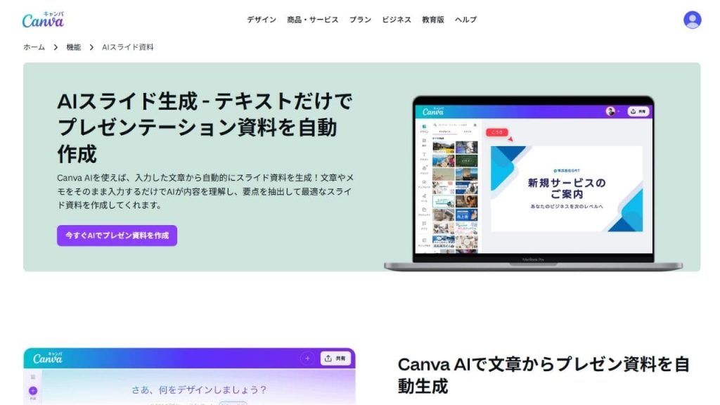 Canva AIを活用すれば、これまで多くの時間を費やしてきたスライド作成業務を効率化できます。