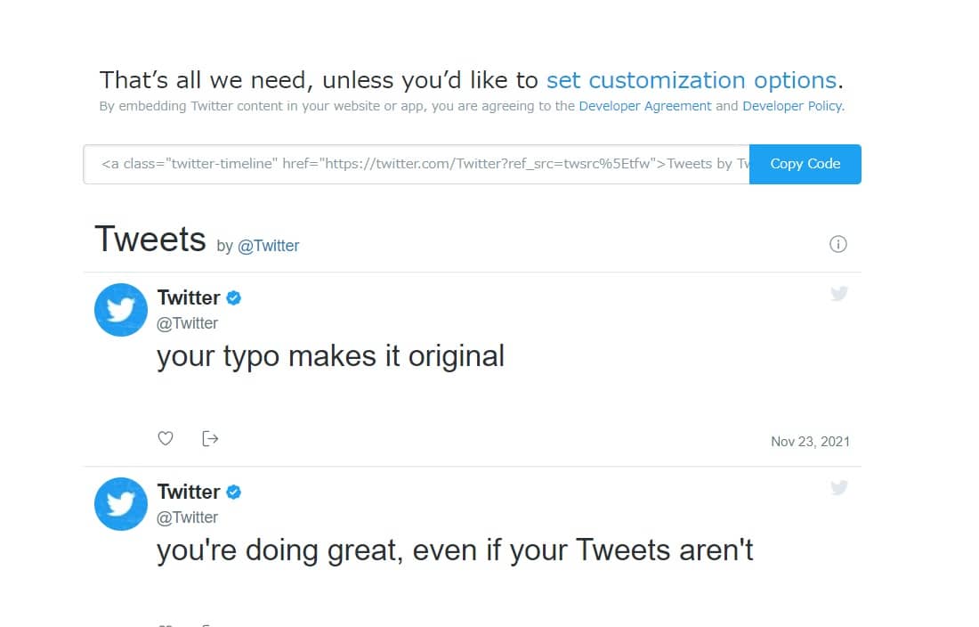 埋め込みコードを自分で編集してカスタマイズすることも可能です。「class=”twitter-timeline”」の後ろに、半角スペースを入れてからカスタマイズコードを入力しましょう。