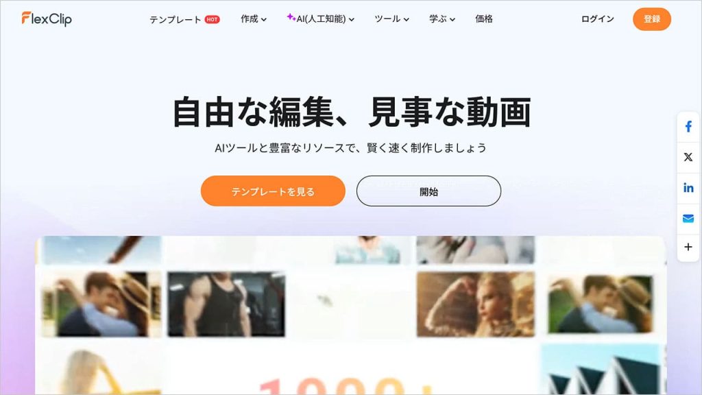 FlexClipは、ブラウザ上で動画編集や制作が行えるAIサービスです。カット・トリミング、速度調整といった編集はもちろん、テンプレートを活用した簡単な動画作成や、動画への字幕生成など、AIを取り入れた幅広い機能がそろっています。