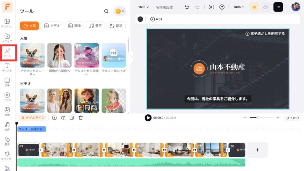 AI機能は無料のトライアル部分のみ使用できます。高度な動画制作・編集を行いたい場合は有料プランを検討するのがおすすめです。