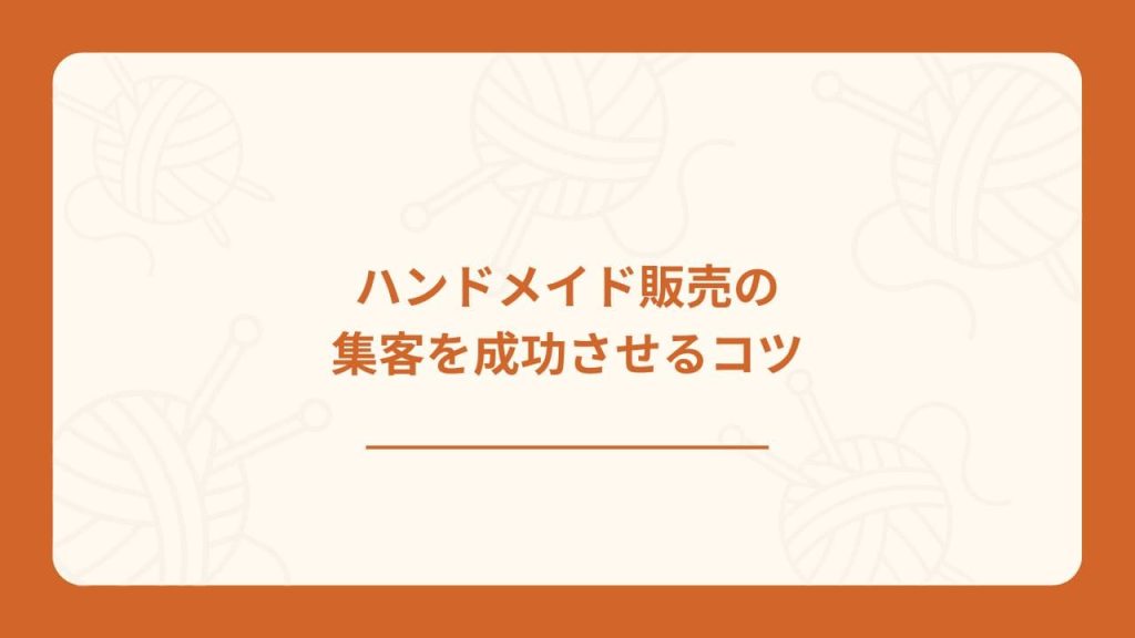 あわせて、ショップカードの配布やワークショップの開催など、直接やり取りが行える施策を取り入れると、信頼関係を築きやすくなります。ハンドメイド販売は、作品を売るだけでなく、作り手としての魅力を知ってもらうことも大切なので、少しずつファンを増やしながら、安定した集客の仕組みを築いていきましょう。