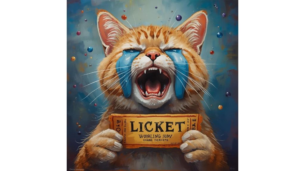 以前、AIピカソで「宝くじに当選して涙を流す猫」というプロンプトを入力した結果は以下のとおりです。