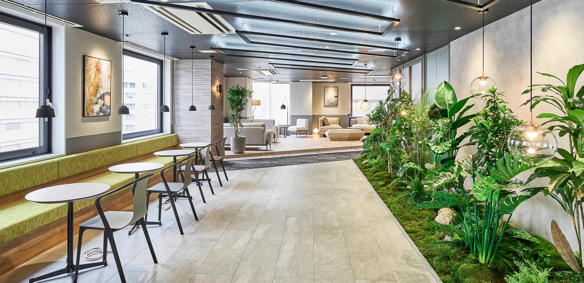 全事業所において、一人ひとりが自分の業務に集中できる「個のワークスペース」と、部署の垣根を越えてコミュニケーションを図れる「集のワークスペース」を完備。メンバーが最高のパフォーマンスを発揮できるように工夫しています。各支社ごとに、内装にオリジナルのデザインを採用しているのも特徴です。個性のあるそれぞれのオフィスを、ぜひご覧ください。