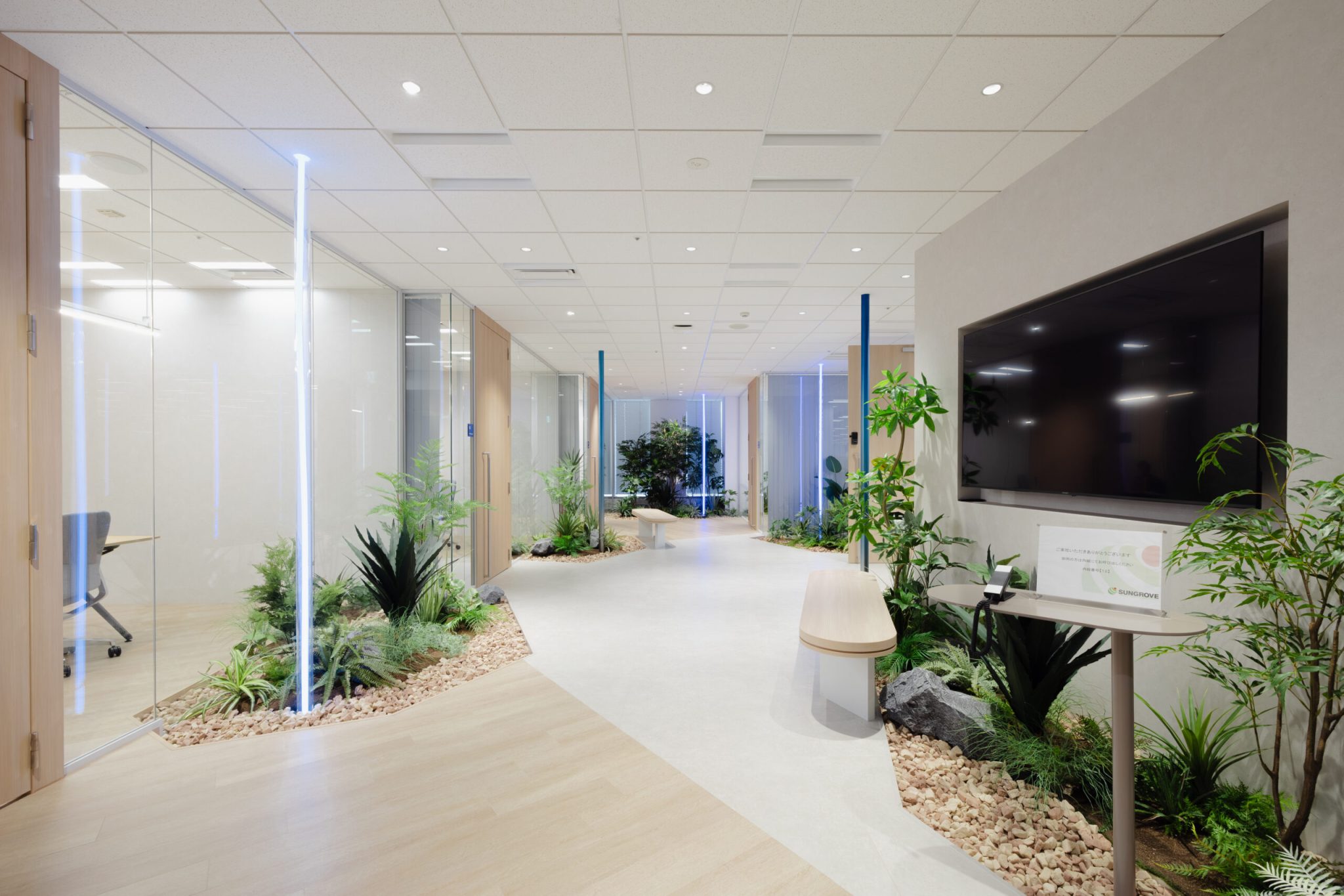 全事業所において、一人ひとりが自分の業務に集中できる「個のワークスペース」と、部署の垣根を越えてコミュニケーションを図れる「集のワークスペース」を完備。メンバーが最高のパフォーマンスを発揮できるように工夫しています。各支社ごとに、内装にオリジナルのデザインを採用しているのも特徴です。個性のあるそれぞれのオフィスを、ぜひご覧ください。