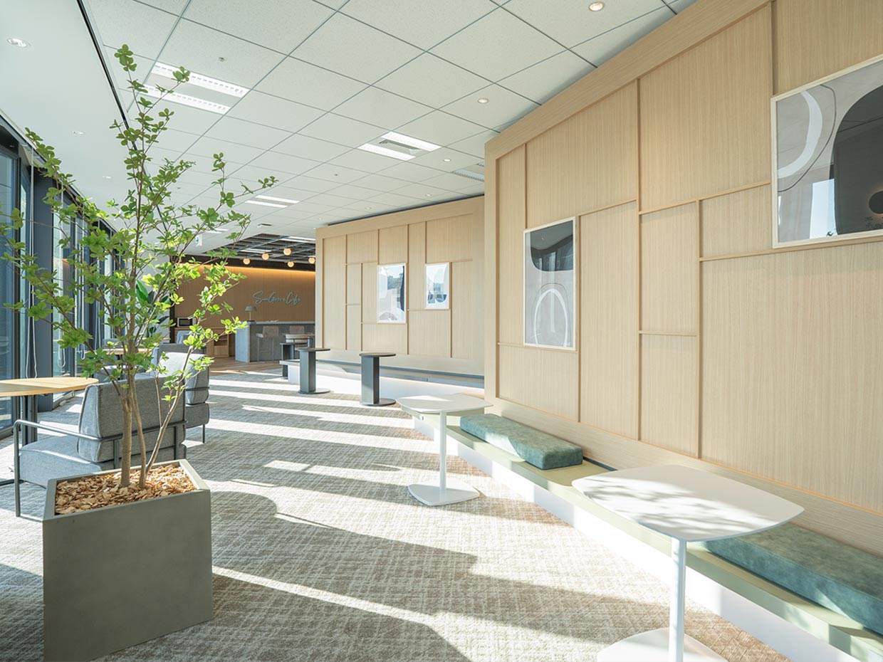 全事業所において、一人ひとりが自分の業務に集中できる「個のワークスペース」と、部署の垣根を越えてコミュニケーションを図れる「集のワークスペース」を完備。メンバーが最高のパフォーマンスを発揮できるように工夫しています。各支社ごとに、内装にオリジナルのデザインを採用しているのも特徴です。個性のあるそれぞれのオフィスを、ぜひご覧ください。