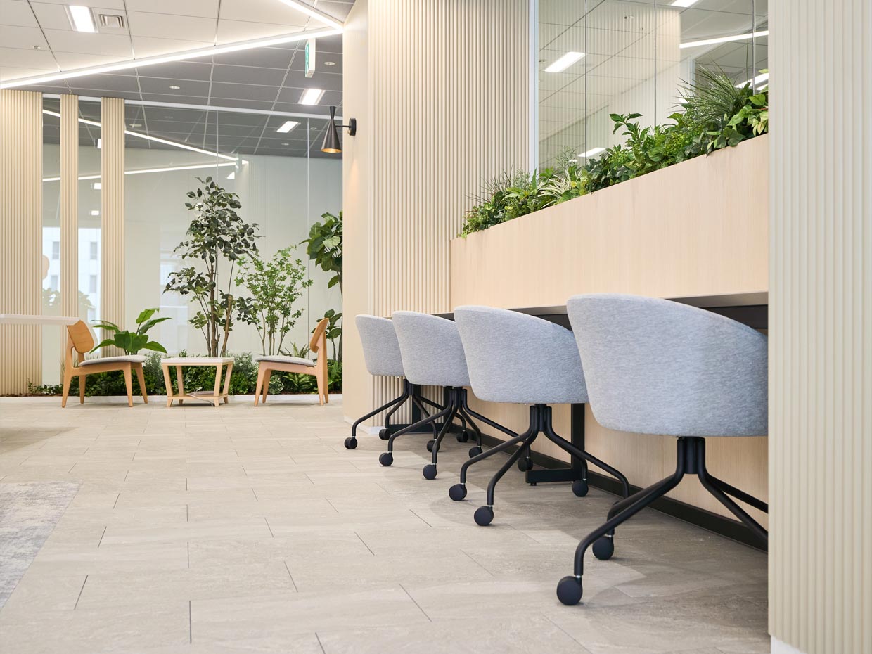 全事業所において、一人ひとりが自分の業務に集中できる「個のワークスペース」と、部署の垣根を越えてコミュニケーションを図れる「集のワークスペース」を完備。メンバーが最高のパフォーマンスを発揮できるように工夫しています。各支社ごとに、内装にオリジナルのデザインを採用しているのも特徴です。個性のあるそれぞれのオフィスを、ぜひご覧ください。