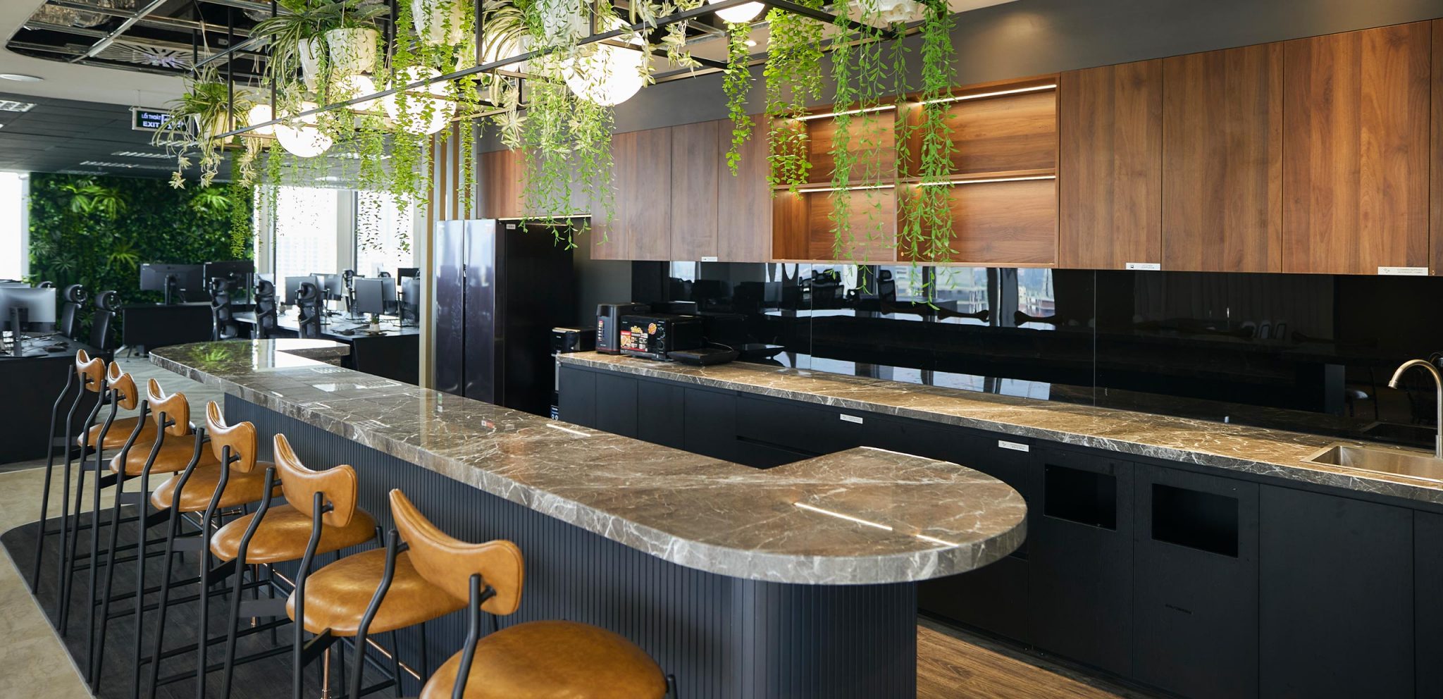 全事業所において、一人ひとりが自分の業務に集中できる「個のワークスペース」と、部署の垣根を越えてコミュニケーションを図れる「集のワークスペース」を完備。メンバーが最高のパフォーマンスを発揮できるように工夫しています。各支社ごとに、内装にオリジナルのデザインを採用しているのも特徴です。個性のあるそれぞれのオフィスを、ぜひご覧ください。