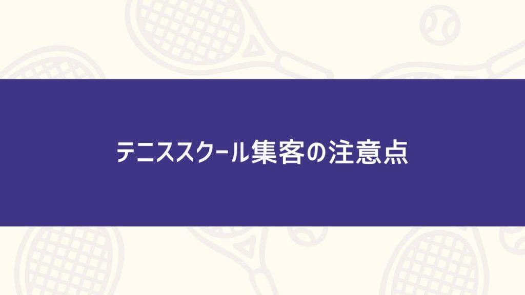 テニススクール集客施策を実行する際、失敗やトラブルを避けるための注意点がいくつかあります。