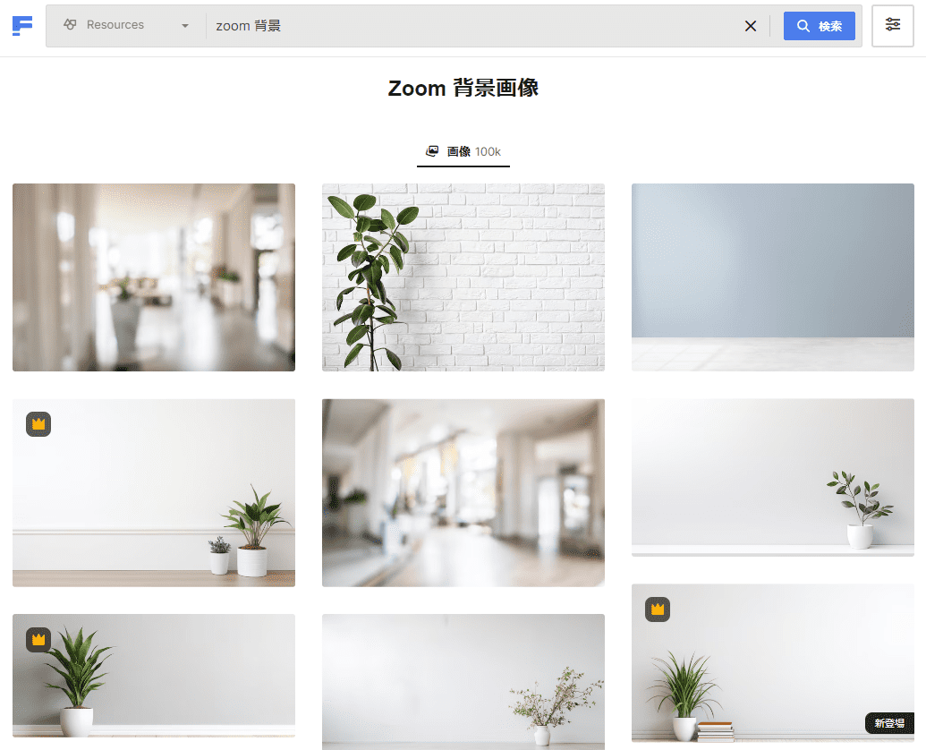 無料素材サイト「FREEPIK」では、検索窓で「Zoom 背景画像」と入力すればシンプルな画像が複数表示されます。もちろん、素材サイトなのでインパクトのある画像も豊富です。お気に入りをいくつか見つけてストックしておいてはいかがでしょうか。