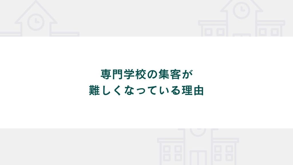 専門学校の学生募集は、以前と比べて明らかに難しくなっています。集客施策を検討する前に、まず自校を取り巻く環境を正確に把握しておくことが大切です。