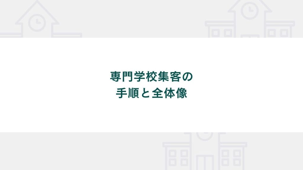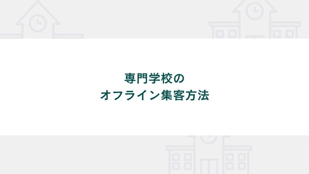 受験生が知りたいのは、強みが自分にとってどんなメリットをもたらすかです。「プロと同じ環境で実習できるため、卒業後すぐに現場で通用するスキルが身につく」のように、将来を見据えた言葉に変換することで強みとして伝わります。集客施策を設計する前に自校のアピールポイントを受験生目線で言い直す作業を行っておきましょう。